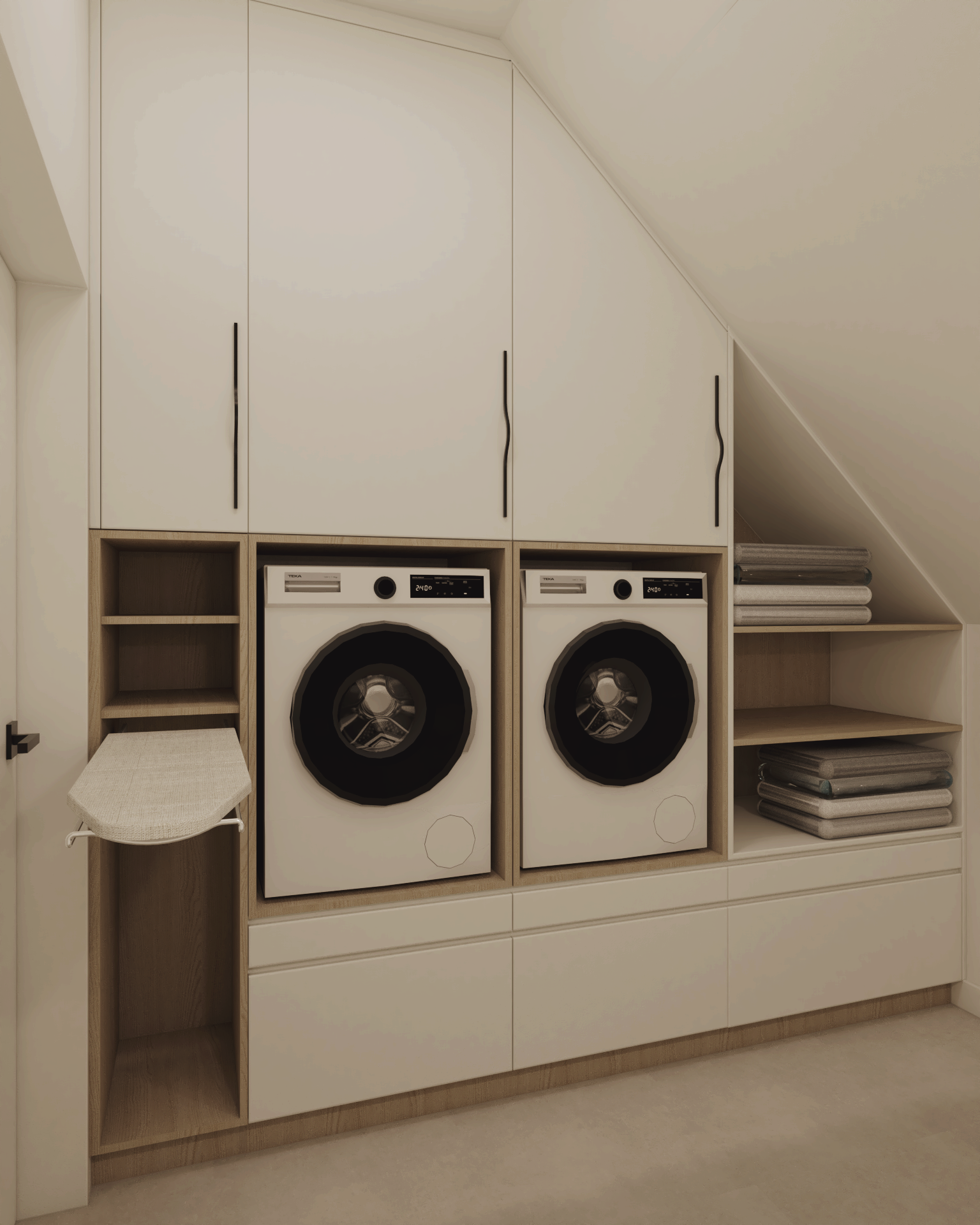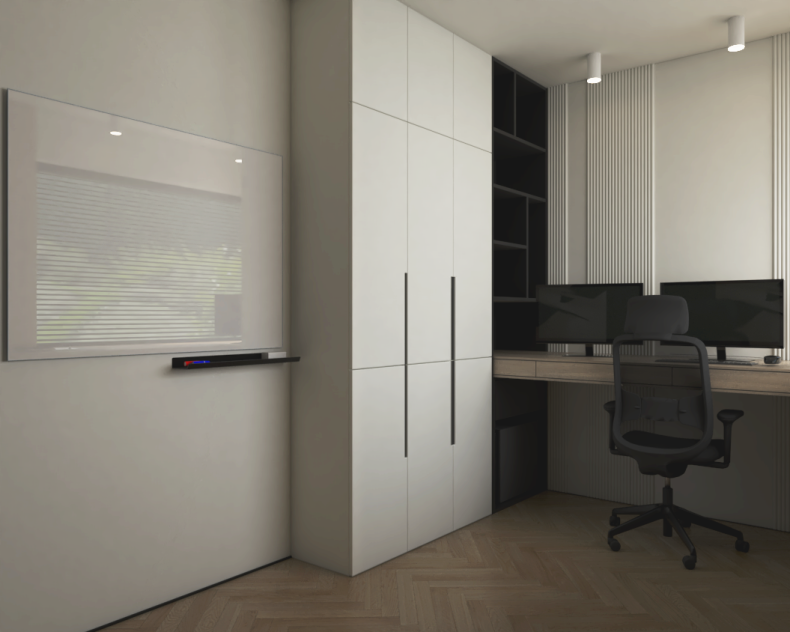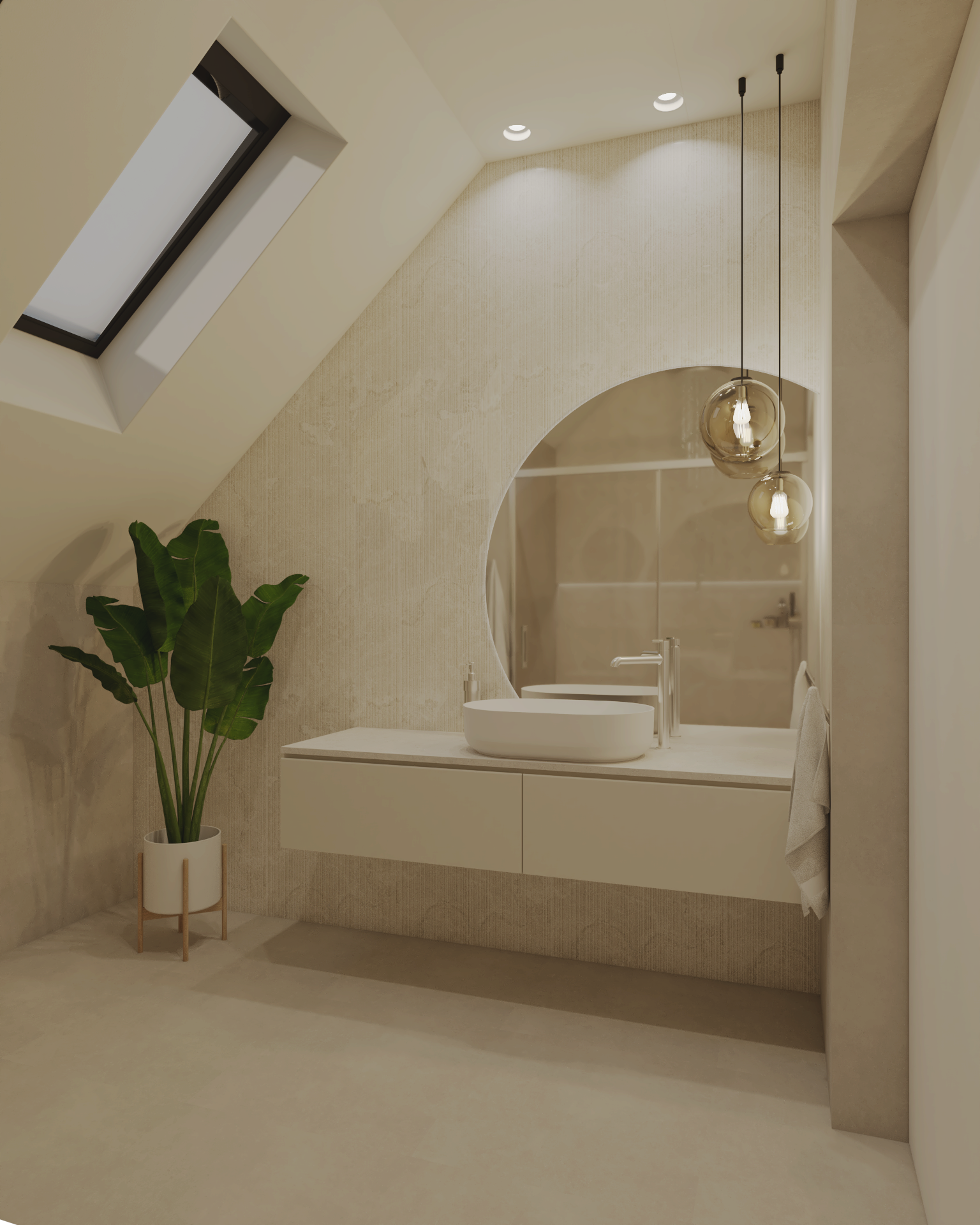 Stworzyliśmy przestrzeń ponadczasową, opartą na stonowanych barwach, eleganckich kontrastach i naturalnych materiałach. Delikatne akcenty ocieplają całość, a światło odgrywa kluczową rolę, budując wyjątkowy klimat i podkreślając charakter wnętrz.
