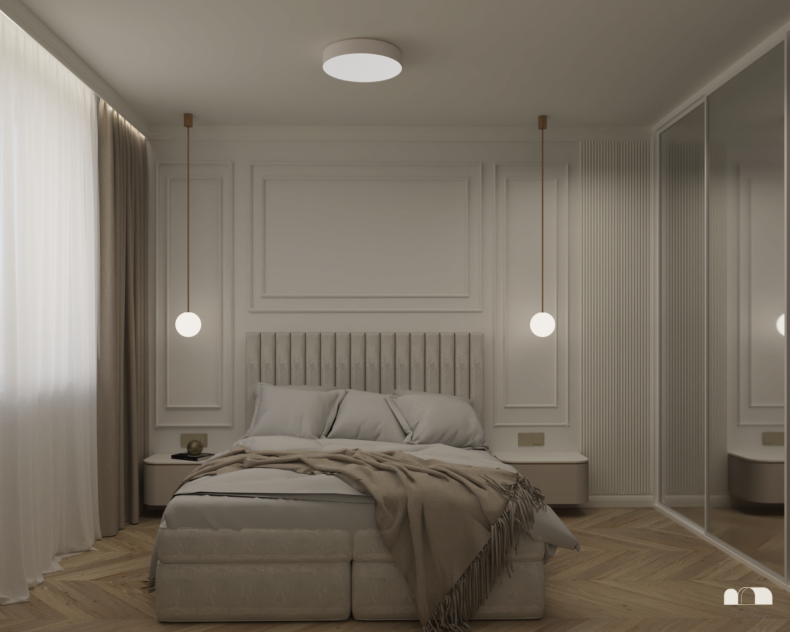 Sztukateria, dopracowane oświetlenie i miękkie faktury sprawiają, że przestrzeń staje się harmonijnym tłem dla codziennego życia.